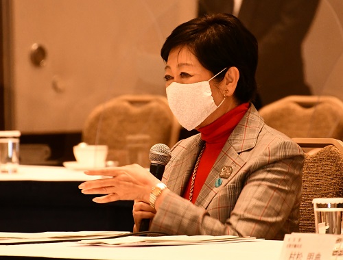 次いで、同月26日(木)、東京都商工会議所連合会(会長:三村明夫東商会頭)では、都内8商工会議所における「コロナ禍における管内経済動向」をテーマに小池都知事との懇談を開催しました。
