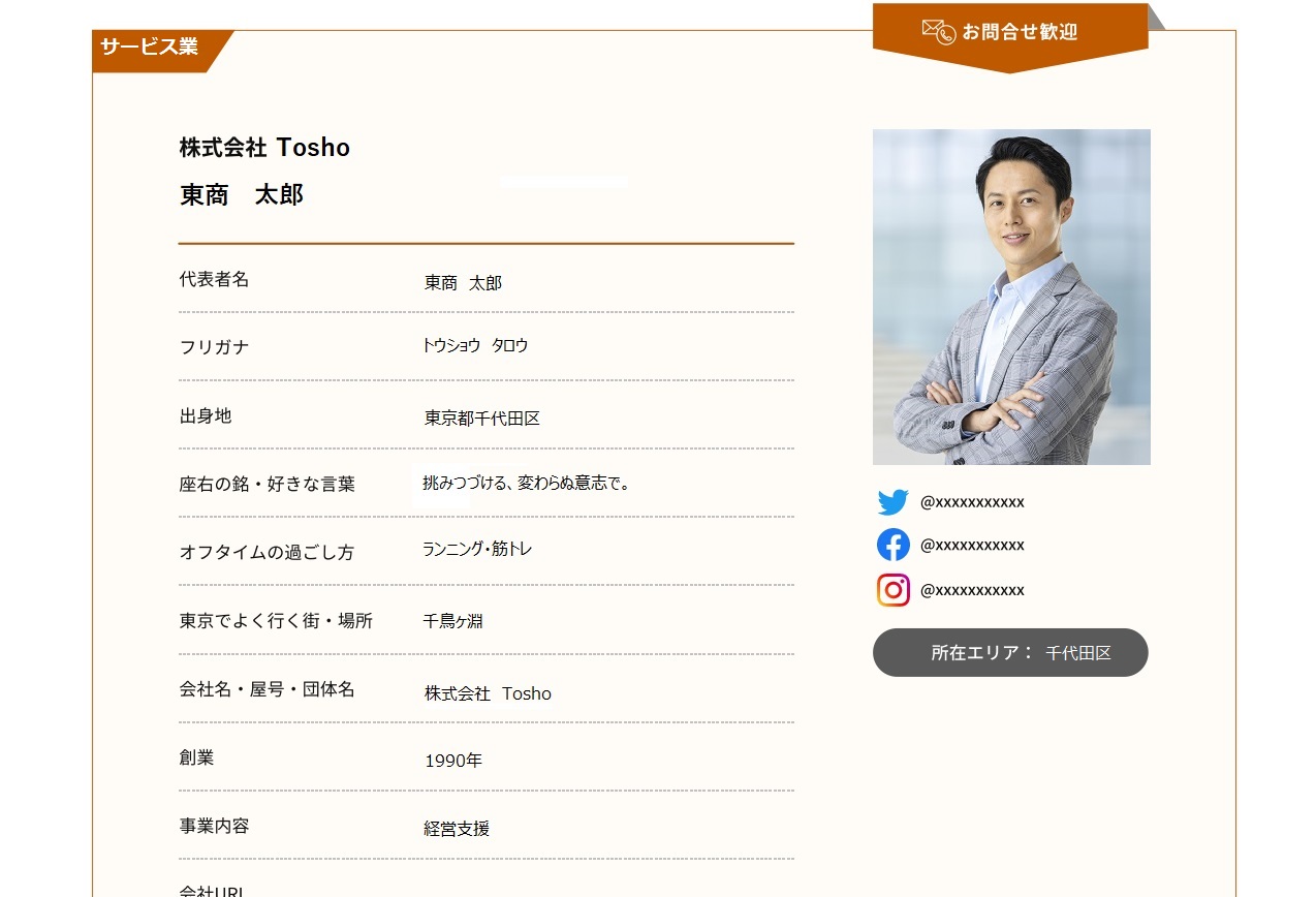 本サイトでは、「経営ビジョン」「⾃社の強み」など会社に対する”社⻑の想い”から、「座右の銘」「オフタイムの過ごし方」など社⻑の素顔まで全国へ広くご紹介しています。利用者からは「同種の他のサイトと比べて個性的なPRができる」として高く評価いただいております。