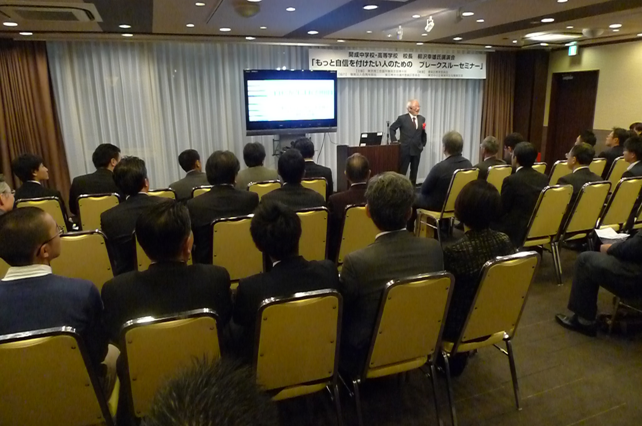 豊島支部では11月16日、開成中・高校長の柳沢幸雄氏をお招きし、「もっと自信を付けたい人のためのブレークスルーセミナー」と題した講演会を実施し、区内若手経営者をはじめ80名が参加しました。