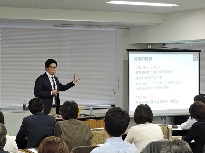 講師の 水上 洋介 氏(中小企業診断士)より、販促・プロモーションの取組み方、ブランド作りのポイント、販促効果を高めるプロモーションコンセプト作成等について、解説いただきました。