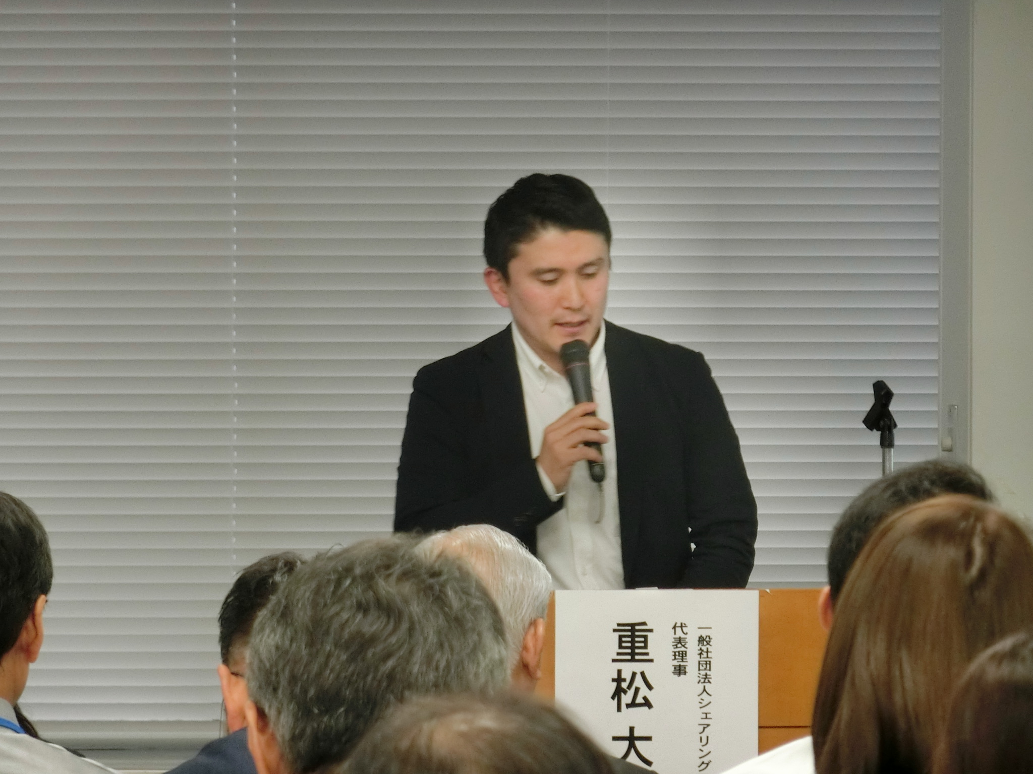 また、続く第2部では、「シェアが生みだす新たなビジネスモデル」と題し、一般社団法人シェアリングエコノミー協会 代表理事 重松大輔氏より、シェアリングビジネスの具体的な事例や、シェアリングエコノミーの普及によって生まれる社会の未来像などについてお話を伺いました。