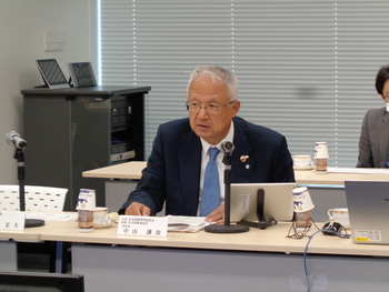 会議では、まず、日東カストディアル・サービス株式会社常務取締役 小西 英司 (こにし えいじ)様から同社における「被用者保険の適用拡大・年収の壁」への対応について、続いて、企業年金連合会理事長 鮫島 正大(さめじま まさひろ)様から企業年金の現状や普及・拡大にかかる課題、および同連合会における普及・拡大に向けた取組について、それぞれご説明をいただきました。次に、厚生労働省 政策統括官(総合政策担当)付 政策企画官 安田 正人(やすだ まさと)様(当初予定だった安藤公一参事官の代理)から、昨年末に閣議決定された「全世代型社会保障構築を目指す改革の道筋(改革工程)」に基づき4月から検討が始められた「医療・介護保険における金融所得の勘案」の現状と課題について、ご説明をいただきました。