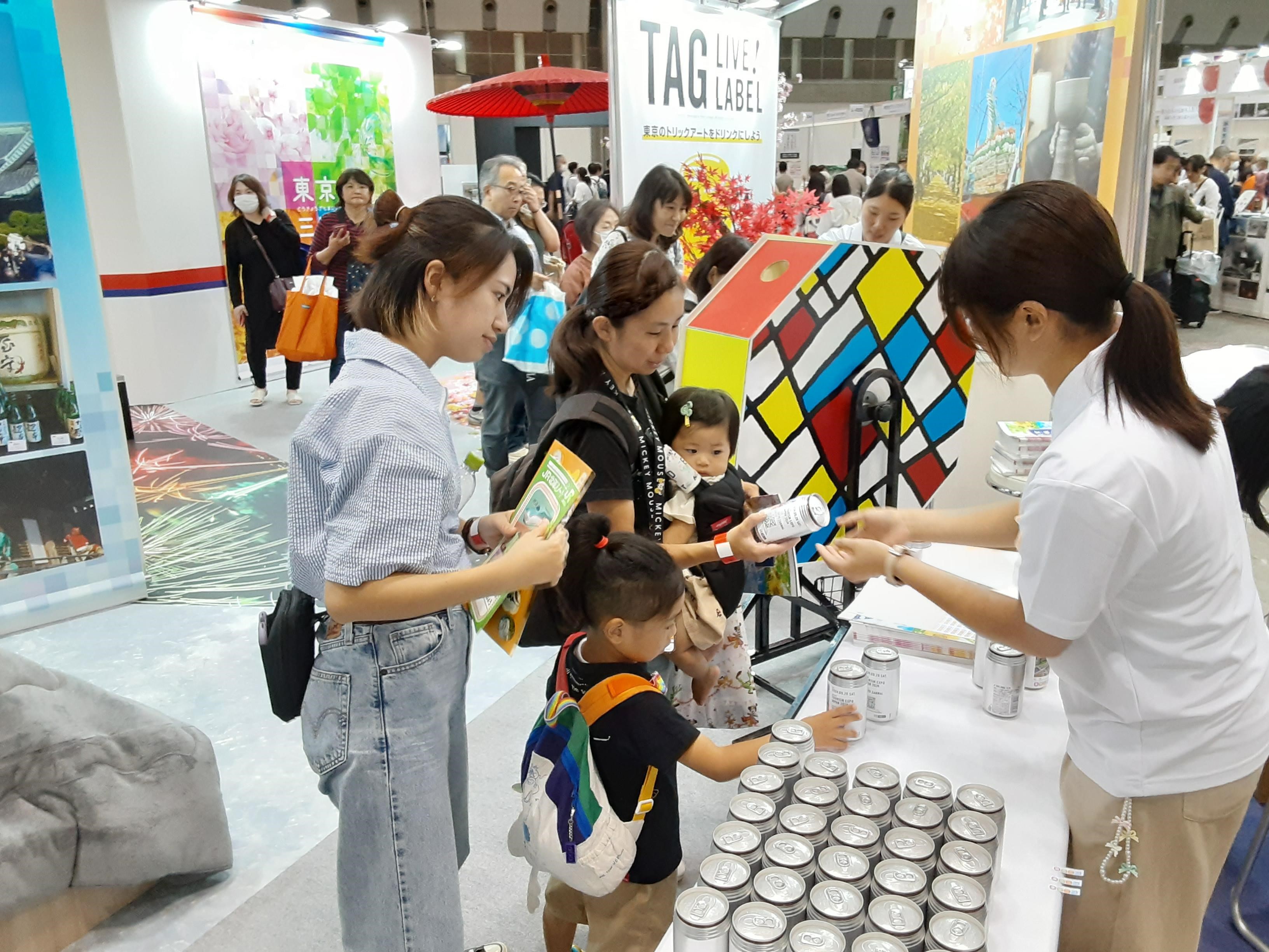 また、東京の名所である東京タワーと東京スカイツリーを利用したトリックアート写真撮影のコーナーを設置。撮影した写真をラベルシール化し、缶に貼って配布する取組を行い、4日間の稼働で計2,500名の方がブースを訪問しました。