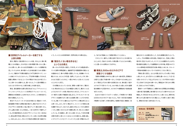 さらに今回は、新たな環境に踏み出す時期である春に履き替えることの多い“靴”をトピックに、革靴職人の街・浅草にて兄弟で半世紀以上、世界に名だたる名ブランド靴を作り続けてきた革靴職人を特集しています。