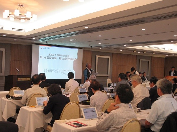 東京商工会議所文京支部は、7月11日に「第178回役員会・第108回評議員会」をハイブリッド形式で開催しました。会議では、2024年度事業報告(案)と2024年度収支決算(案)について審議されたほか、分科会の今年度事業計画や役員・評議員から業界の景況について報告がありました。
