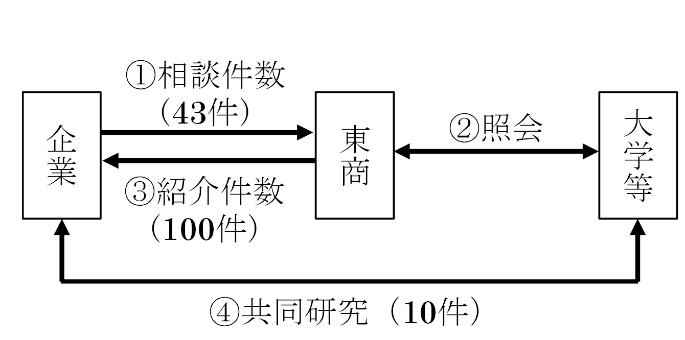 2013年3月の事業開始以来、2015年8月末までに企業から43件の相談を受け付け、これまでの紹介実績が100件を突破しました(相談1件あたりの紹介案件は平均約2.3件)。紹介実績100件のうち10件が共同研究へとつながり、製品開発に進んだ事例も出始めています。