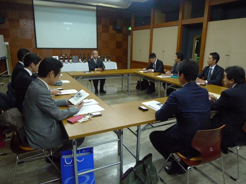 13日は金沢商工会議所を訪問し、地域振興部長の西田哲次氏から「北陸新幹線開業に向けた取り組みについて~開業対策と開業後の課題~」についてご高話いただきました。その後、約400年続く老舗の酒蔵である株式会社福光屋を訪問し、酒蔵を見学し日本酒が出来るまでの工程について説明を受け、さらに福光松太郎社長より「会社を長く続ける秘訣」についてご高話いただき、社長就任後に行った基礎化粧品や機能性食品分野への進出、直営ショップの開設等、様々な変革に対する取組み等についてお話しいただきました。