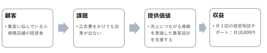 たとえば、「誰に・どんな課題があり・どのような提供価値で解決するのか」という流れは、文章で説明するよりも、図にした方が一目で理解できます。