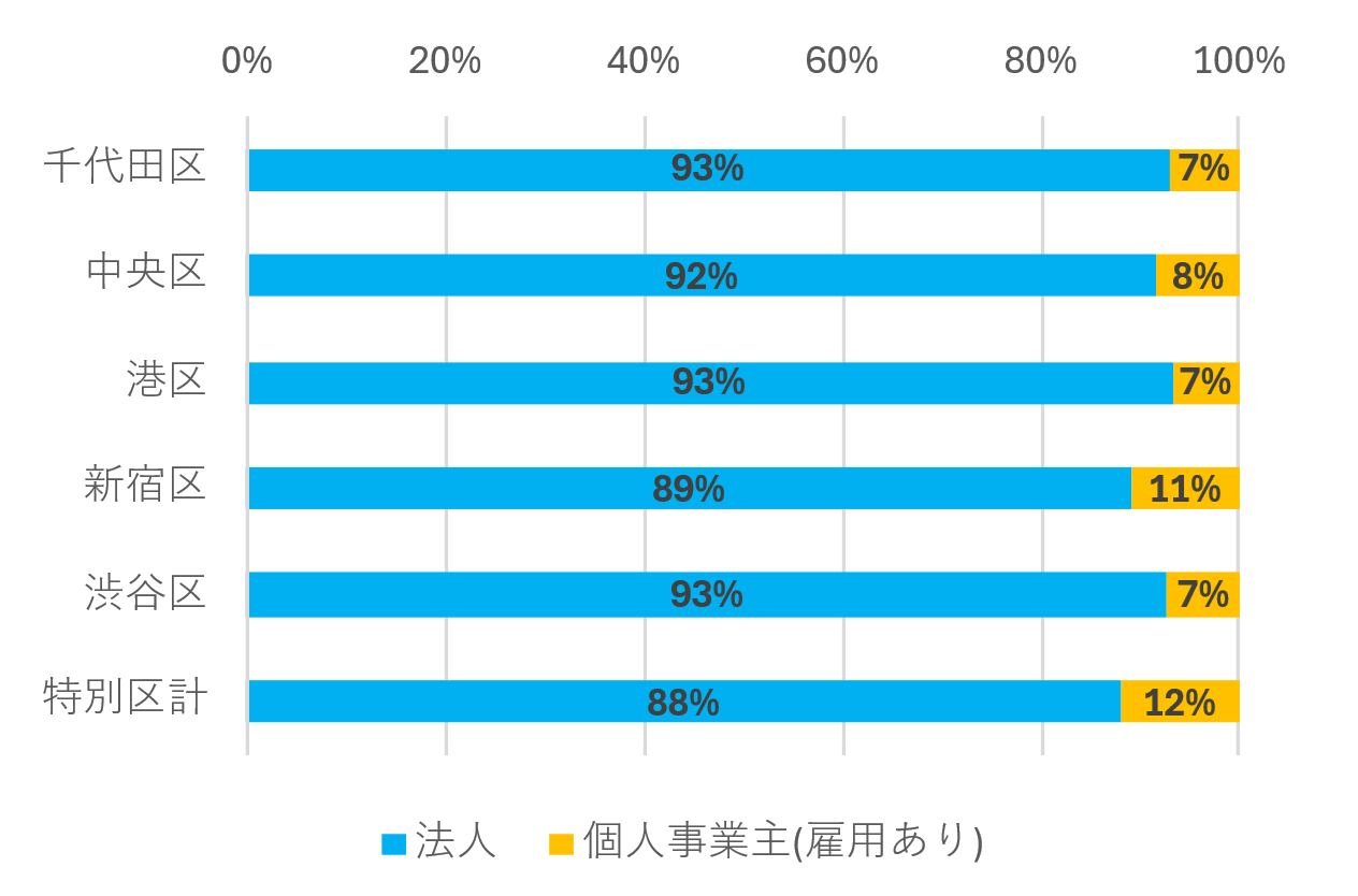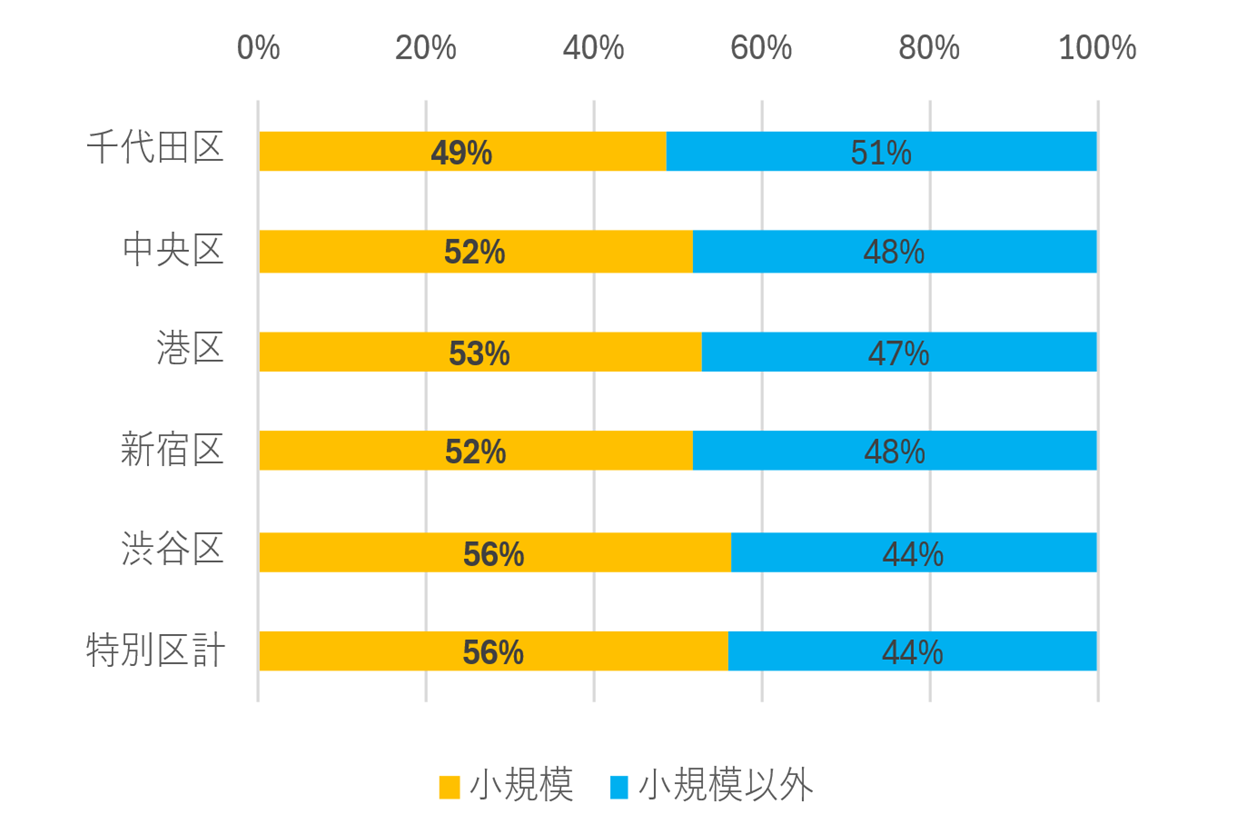 もっとも、港区は事業所数自体が多いため、小規模事業者の数は一定規模存在している。