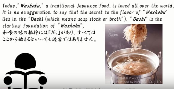 動画は、商品やサービスの紹介に留まらず、株式会社にんべんの経営理念や、2013年ユネスコの無形文化遺産に登録された和食の根幹である「だし」についての紹介などを盛り込んでいます。