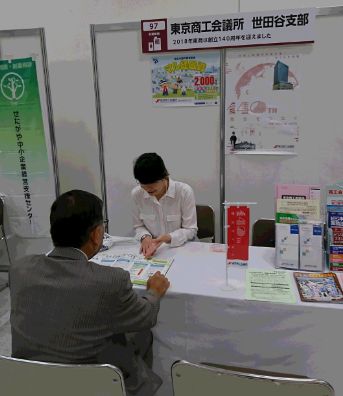 ブースでは、東京商工会議所の各種事業のPR、経営相談等を行いました。来場者からは、販路拡大や東商事業の活用法について相談、質問がありました。