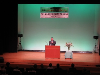 また、27日(金)には、前夜祭として区民センターホールにて「どうなる日本!日本経済の明日を読む」と題した経済講演会(主催:目黒区商工まつり運営委員会・東京商工会議所目黒支部)を開催し、経済ジャーナリストの須田慎一郎氏が講演しました。会場には約200名が訪れ、熱心に耳を傾けていました。