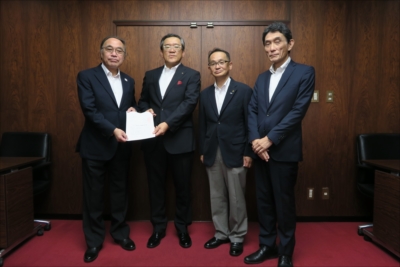 武田会長、佐谷副会長(中小企業・税制特別委員長)、松本まちづくり・観光特別委員長は8月2日に濱野品川区長に対し、「平成31年度品川区中小企業振興策に関する要望」を提出いたしました。主な要望項目は以下のとおりです。