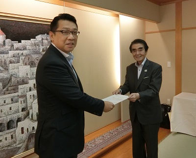その中で金子会長は成澤区長へ「文京区の産業振興に関する要望」を手渡しました。成澤区長は現在取り組んでいる区の施策などを説明するとともに、「できること、できないことをしっかりと判断し、できることについては積極的に取り組んでいきたい」と述べました。