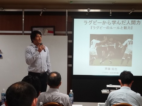港支部青年部は7月27日、元ラグビー日本代表斉藤祐也氏をお招きし、『ラグビーから学んだ人間力~普段入れない秩父宮ラグビー場内部も見学!小学生位のお子様がいる方必聴!~』を開催しました。