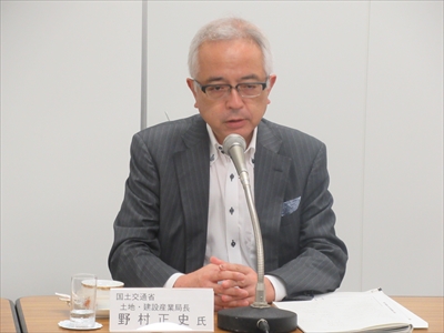 今回は、国土交通省土地・建設産業局より野村局長、高橋建設業課長、須藤不動産業課長にお越しいただき、「建設業・不動産業の現状と課題」についてご講話をいただきました。