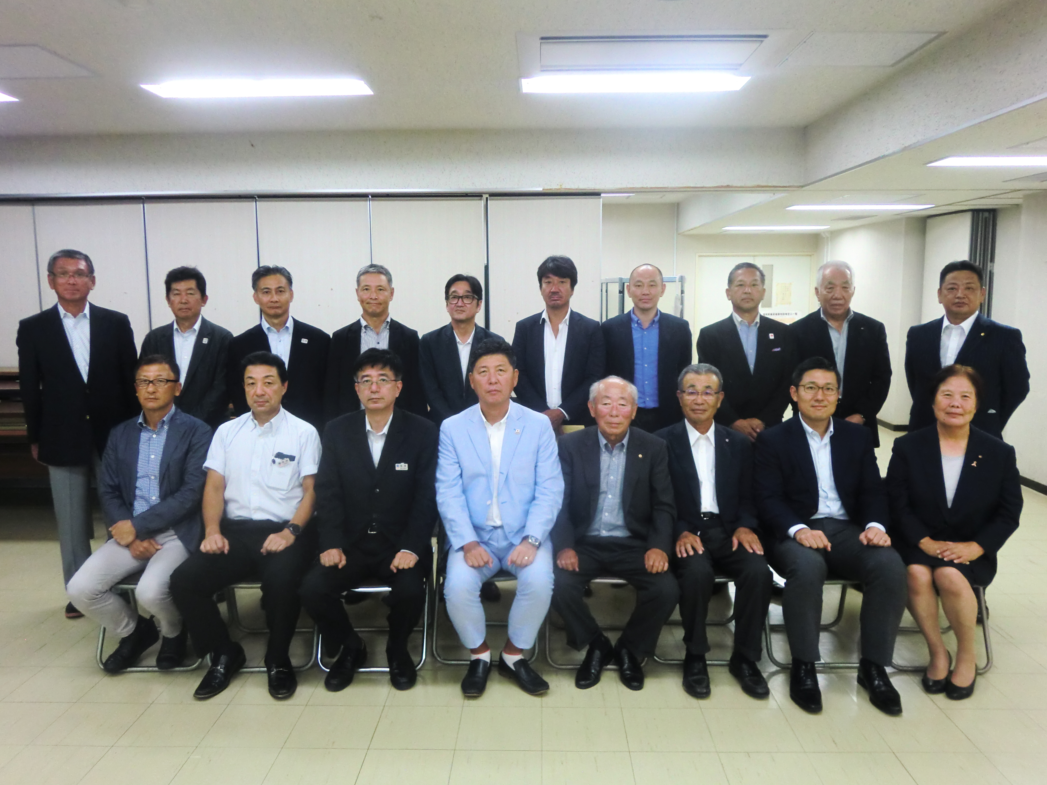 次に福岡県朝倉県土整備事務所を訪問し、鬼塚明文所長、尾崎忠晴災害事業センター長ならびに久保正起朝倉商工会議所建設部会長、本石昇木工建材部会長らとの意見交換会を実施しました。県土整備事務所職員から「平成29年7月九州北部豪雨及び平成30年7月豪雨災害」の資料に基づき、家屋被害総数や道路・河川・砂防等分野毎の被災後取り組み状況について説明がありました。
