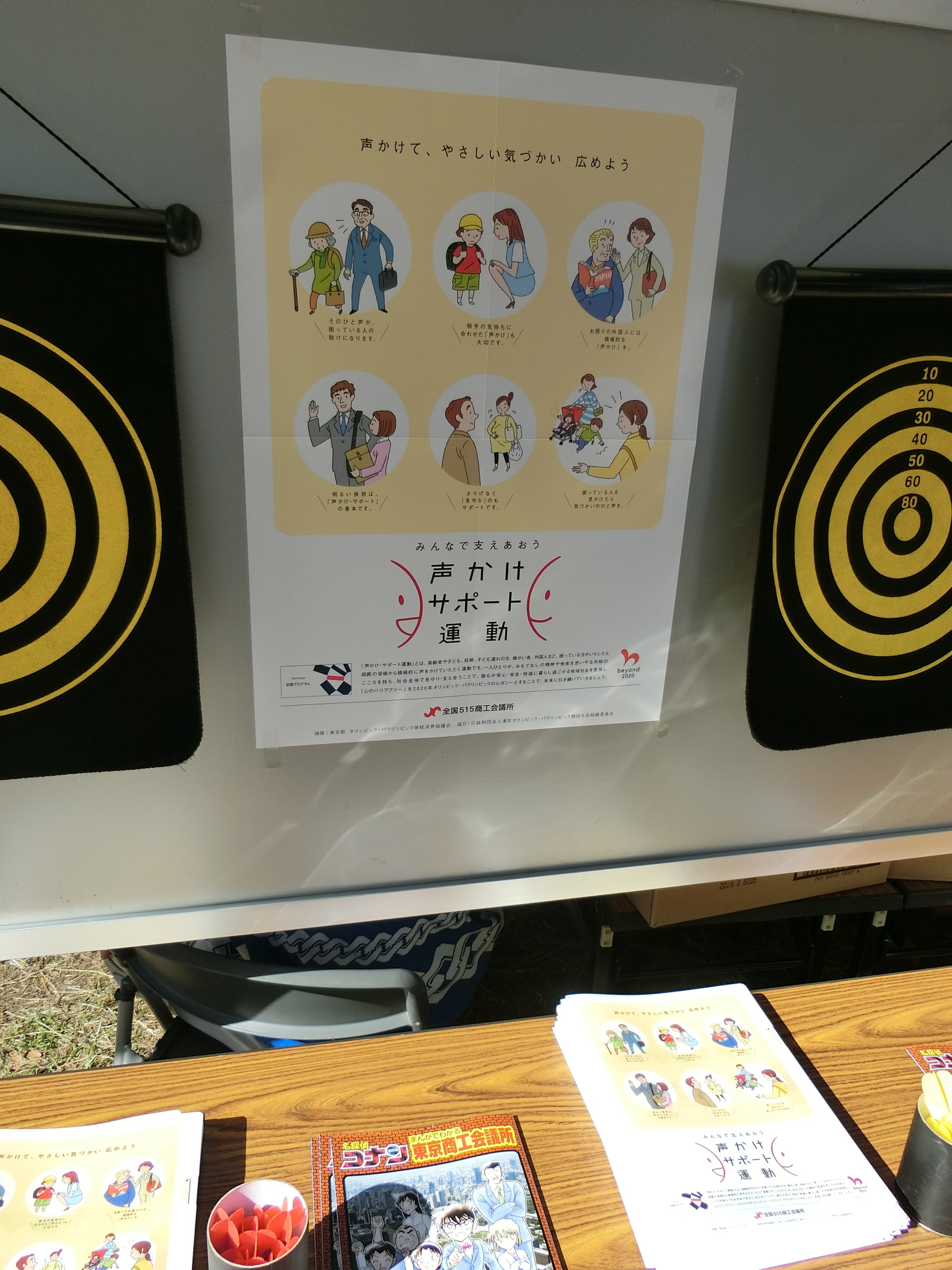 東商ブースではダーツを行い、参加者に対して記念品とともに「声かけ・サポート運動」のファイル等を配布し、PRを行いました。