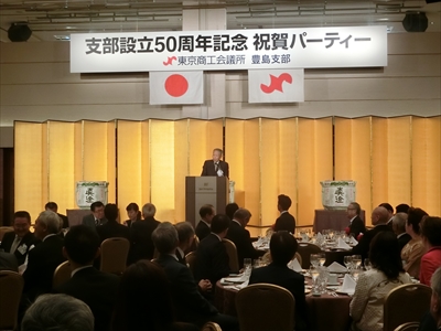 豊島支部は10月19日、支部設立50周年記念式典・祝賀パーティーを実施し、高野之夫豊島区長をはじめとするご来賓の方々を含め307名が出席しました。