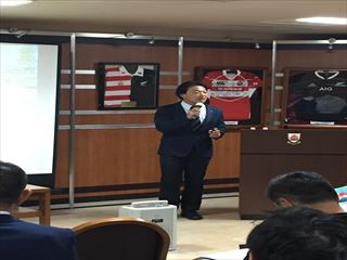 岩渕氏からは、2015年ワールドカップで日本代表が南アフリカ代表に勝利した裏側でのマネージメントについて、中村氏には、色々な個性を持つ選手をまとめるチーム作りについて、本田氏からは、ワールドカップの機運醸成にむけた活動等について説明がありました。
