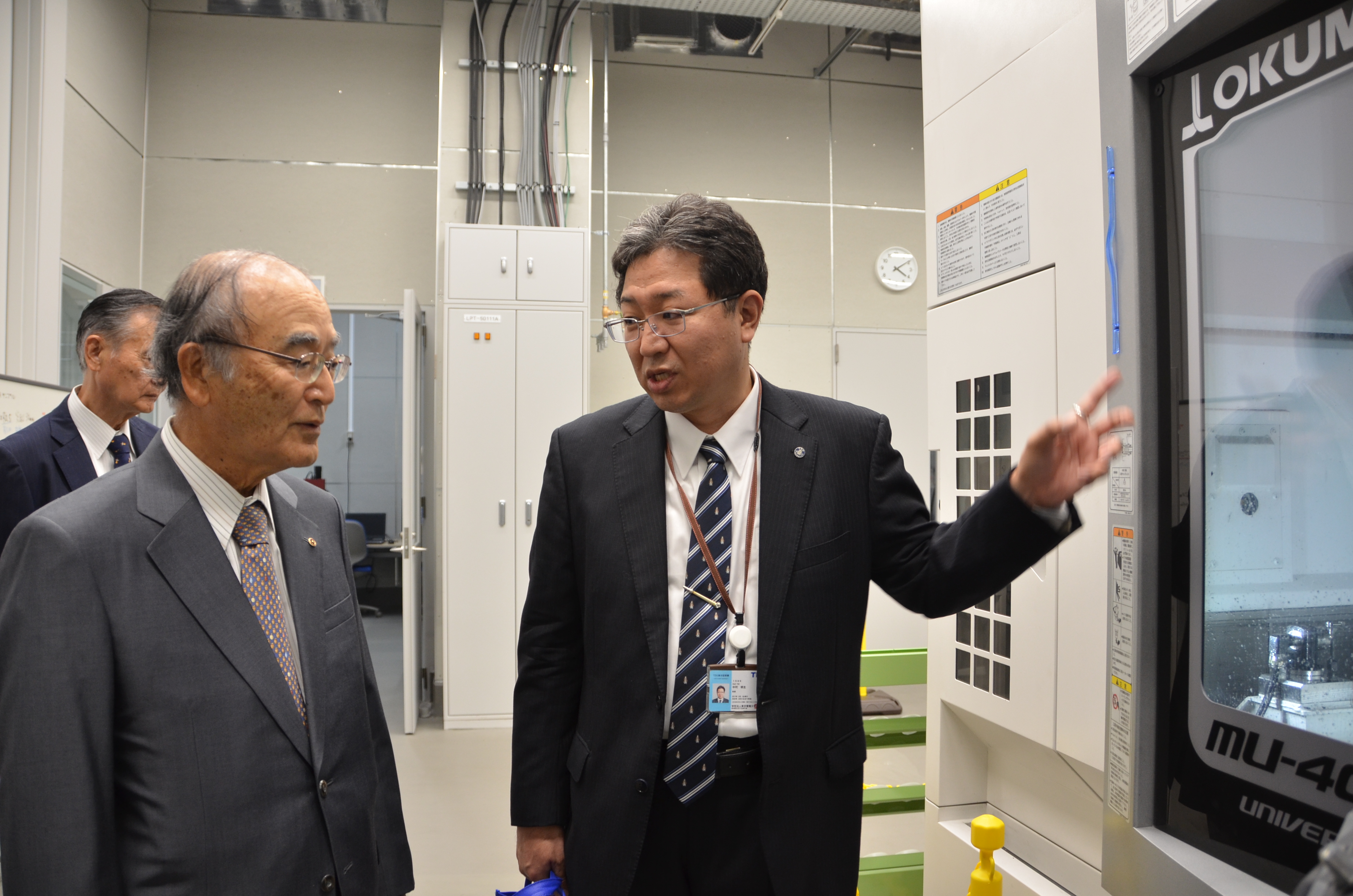 懇談に先立ち三村会頭は横引シャッターと東京電機大学 ものづくりセンターを視察しました。横引シャッターは「上吊り式」の横に引くシャッターを商品開発し、社員の3分の1は65歳以上でシニア世代の雇用に積極的に取り組んでいる企業です。また、東京電機大学 ものづくりセンターは、建学の精神「実学尊重」を具現化した施設として、2017(平成29)年4月東京千住キャンパス5号館に開設され、2018(平成30)年4月から本格運用を開始した施設です。