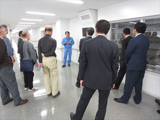 東京PCB廃棄物処理施設の視察では、施設案内のDVDを鑑賞した後、施設内に設置された見学者ルートから実際の作業工程を見学しました。PCBとは「ポリ塩化ビフェニル」の略称で、電気機器の絶縁油、熱交換器の熱媒体など主に建設現場で様々な用途として利用されていましたが、人体に有毒であるとして使用が禁止され、建設関連事業者の保管・廃棄が課題となっています。担当者への質疑応答の時間では、安全に廃棄できる仕組みについて、多くの質問があがりました。