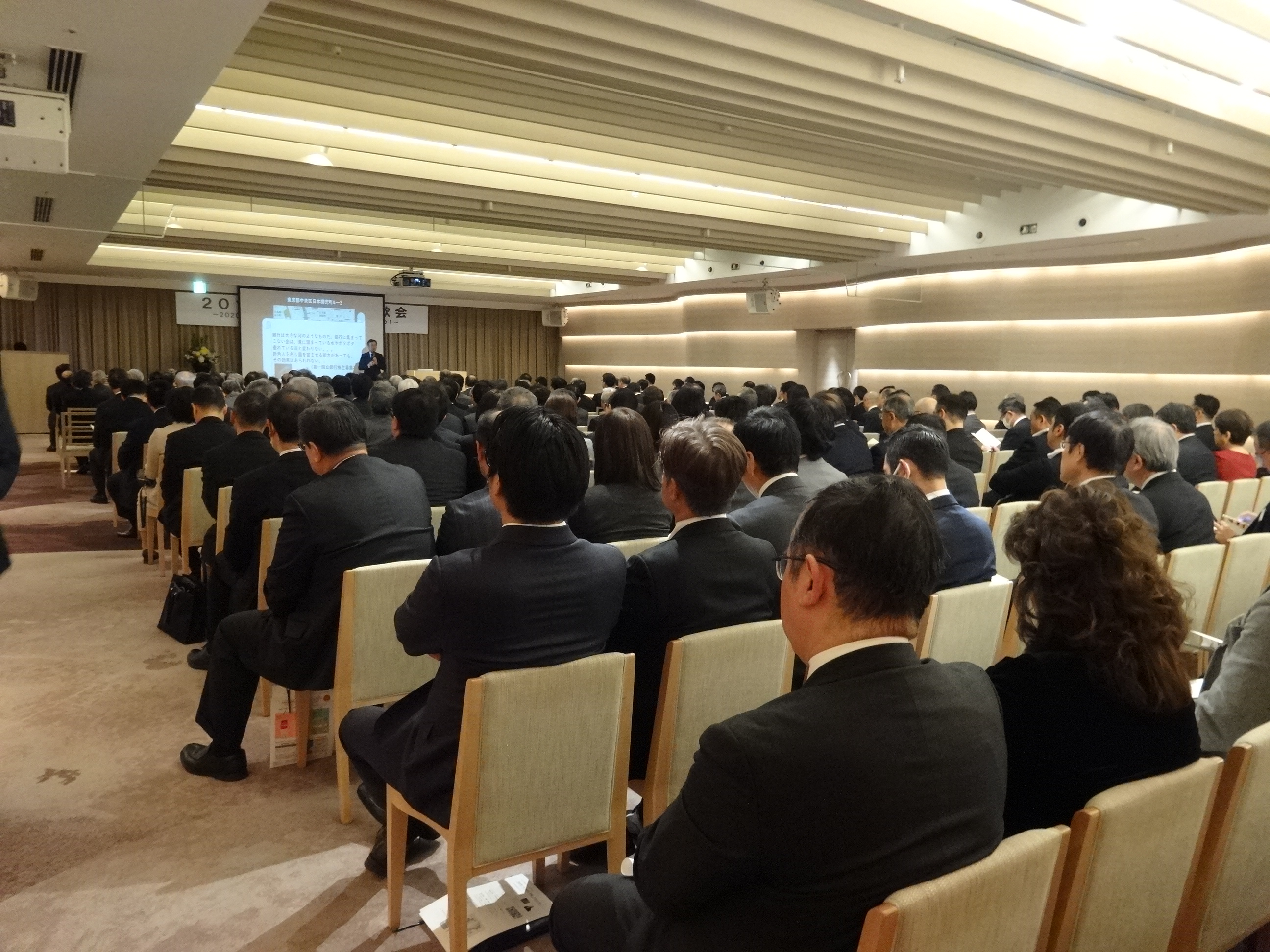 式典では、池田朝彦会長が今年度の支部事業活動について紹介するとともに、次年度の事業計画について説明しました。続いて、野本弘文副会頭(東京急行電鉄・会長)と武井雅昭・港区長に祝辞をいただき、永年会員表彰が行われました。