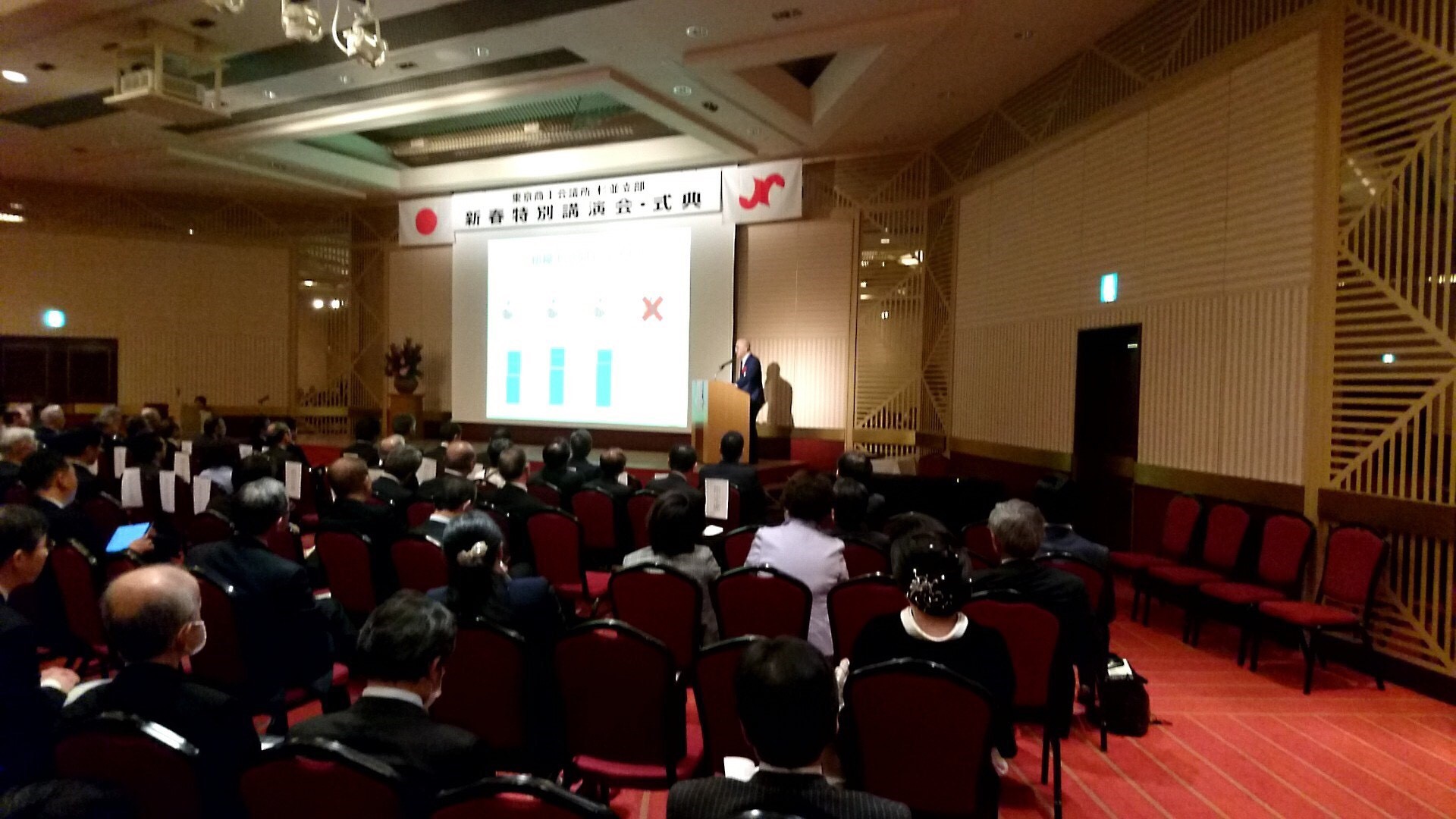 東京商工会議所杉並支部(会長=和田新也・箱根植木株式会社社長)は、1月17日、新年賀詞交歓会・新春特別講演会を開催し260名が参加しました。
