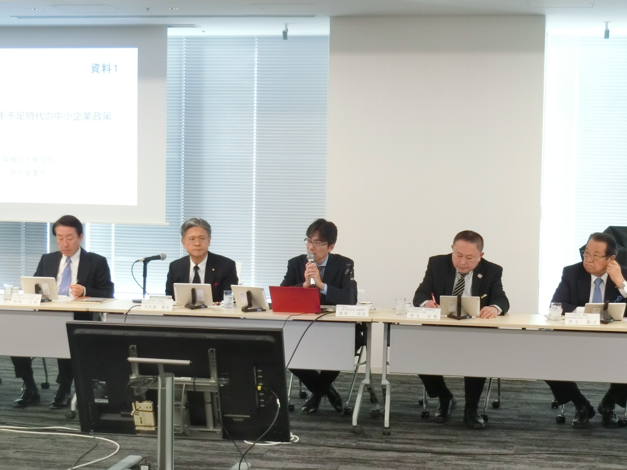 はじめに、中小企業庁長官官房の茂木総務課長より、「高齢化・人手不足時代の中小企業政策」と題して平成30年度第2次補正および31年度の中小企業対策予算について説明がありました。