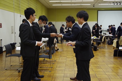 受講者は6~7名ずつのグループに分かれ、社会人としての心構えをはじめ、挨拶及びお辞儀の仕方や名刺交換、電話・来客応対等のビジネスマナーを、2日間のロールプレイで学びました。
