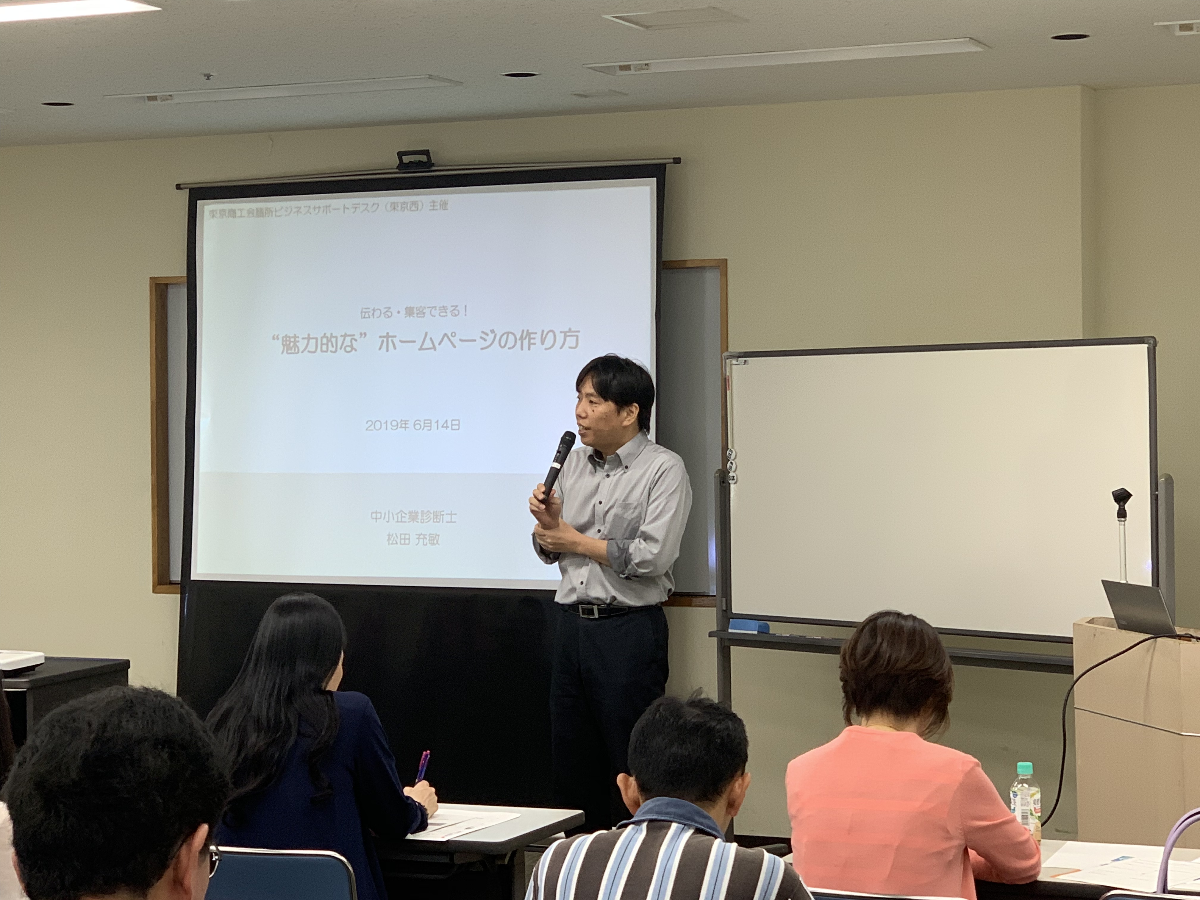 東京商工会議所 ビジネスサポートデスク(東京西)では、6月14日(金)にホームページ制作をテーマとする「伝わる・集客できる!”魅力的な”ホームページの作り方」セミナーを開催しました。