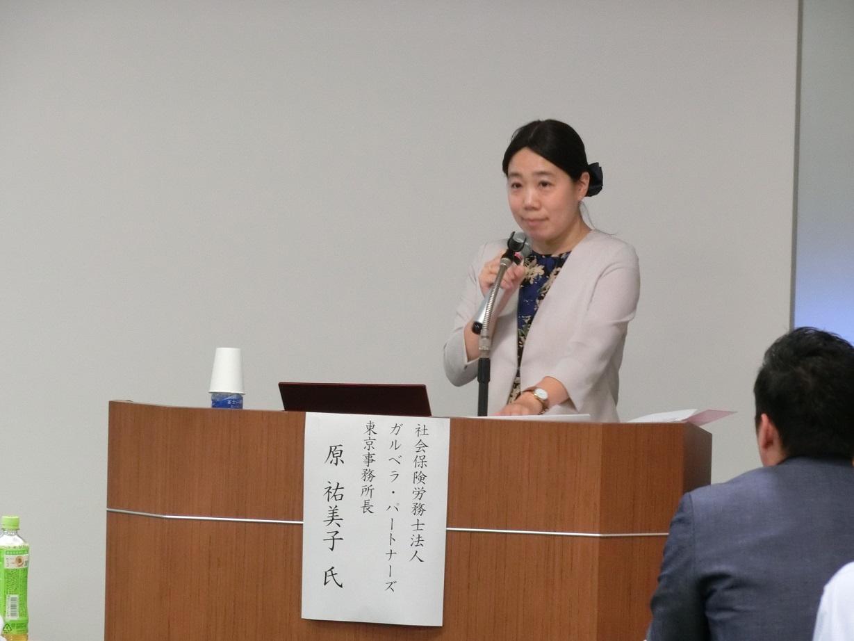 当日は社会保険労務士法人ガルベラ・パートナーズ東京事務所長の原 祐美子氏を講師に招き、働き方改革で取り組む必要がある施策と、対応する助成金・支援メニューを、それぞれ関連付け事例も交え分かりやすく説明いただきました。