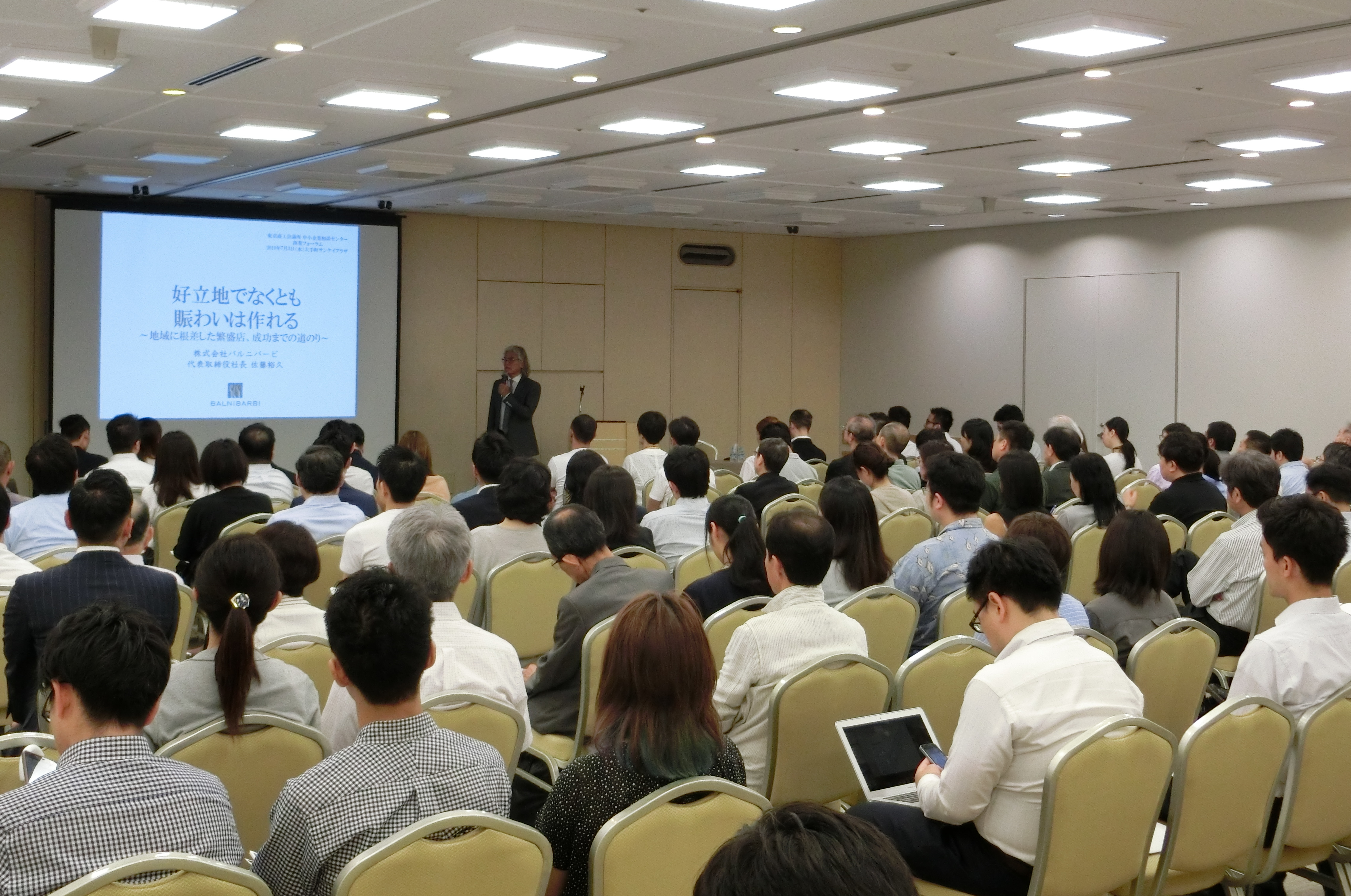 東京信用保証協会との共催で毎年開催している「創業フォーラム」は毎回、起業家を講師に招き、特別講演を実施しています。今年度は、東京・京都・大阪をはじめ全国に約90店のレストラン・カフェやスイーツショップを展開する株式会社バルニバービ 佐藤裕久社長を講師にお招きして、「好立地でなくとも賑わいは作れる~地域に根差した繁盛店、成功までの道のり~」という演題でご講演をいただきました。