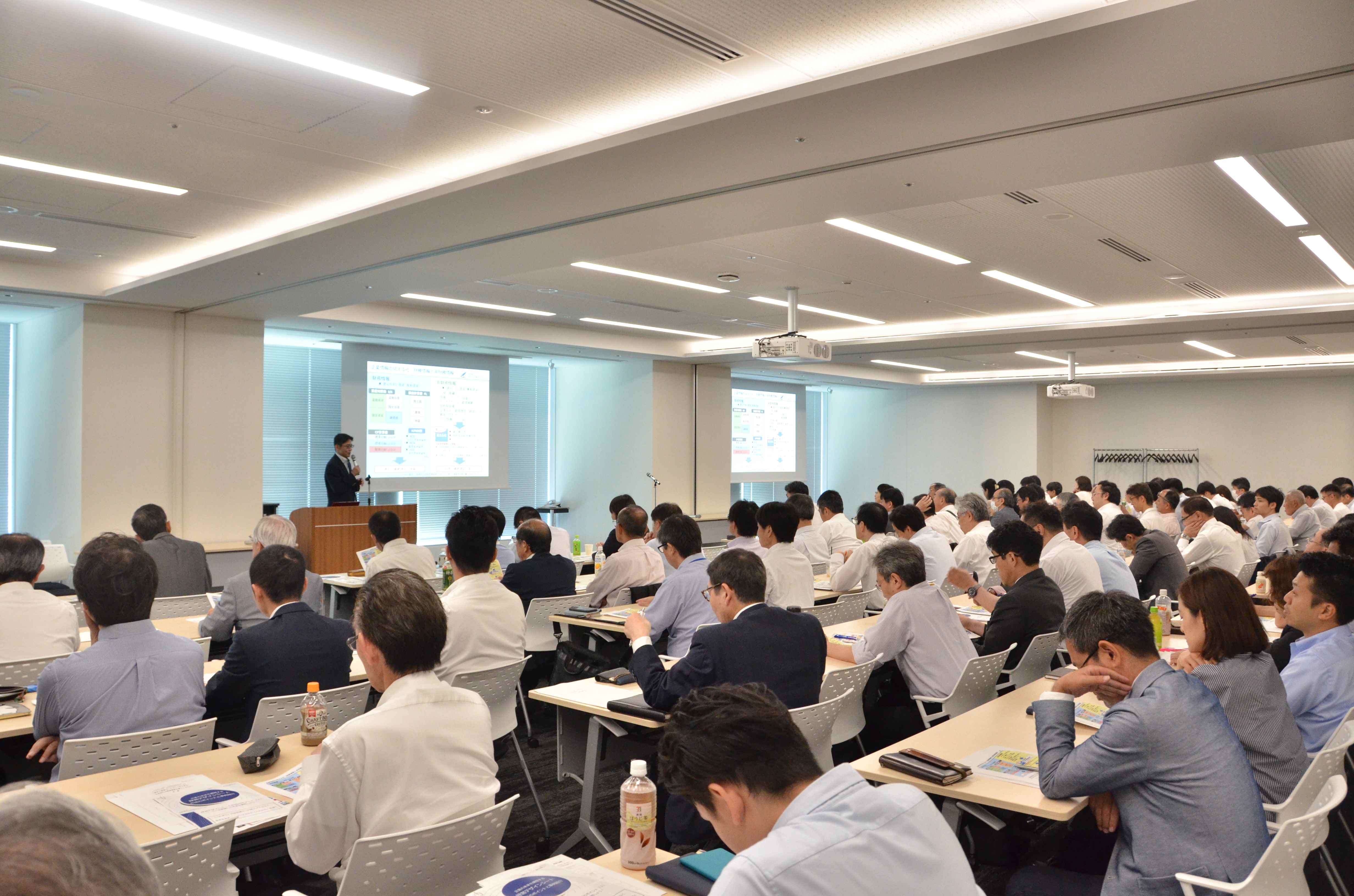 知的財産戦略委員会(委員長:荒井寿光・東京中小企業投資育成株式会社相談役)は、6月25日、内閣府知的財産戦略推進事務局参事官の仁科雅弘氏、土生特許事務所の土生哲也弁理士、宝養生資材㈱の吉村社長を招き、「~事例と簡易ワークでしっかり学ぶ~『令和時代の経営戦略を描く』」を開催。96人が参加した。