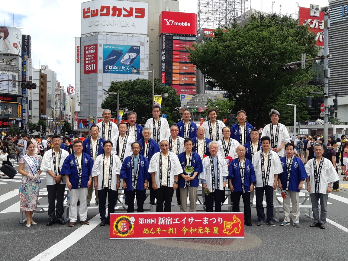 7月27日、新宿支部が後援する「新宿エイサーまつり」が新宿駅東口周辺で開催されました。