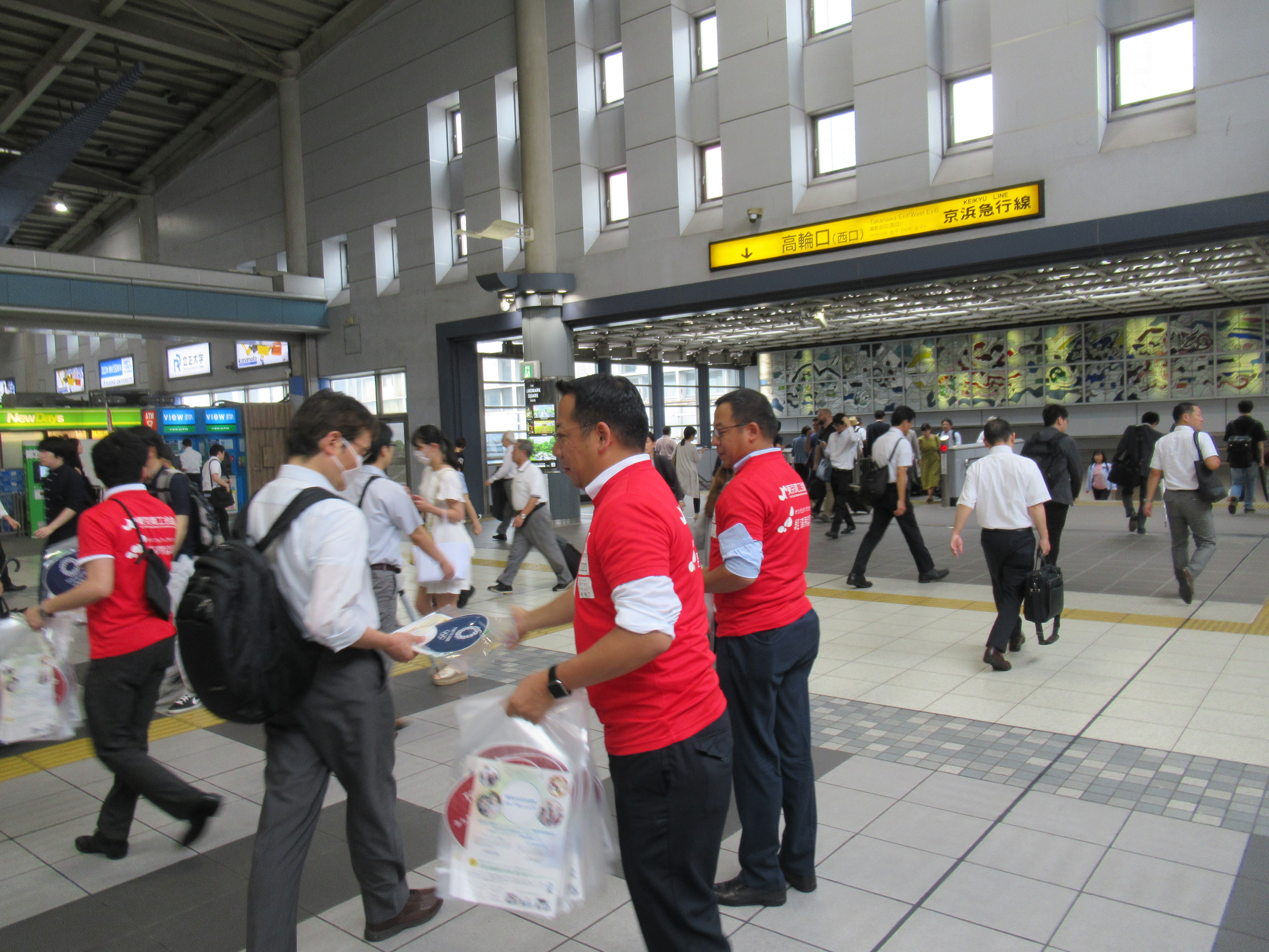 東京商工会議所およびオリンピック・パラリンピック等経済界協議会は7月22日、東日本旅客鉄道株式会社様の協力のもと、JR東京駅とJR品川駅において東京2020大会期間中の交通混雑緩和に向けた協力を呼びかけ、チラシを配布しました。