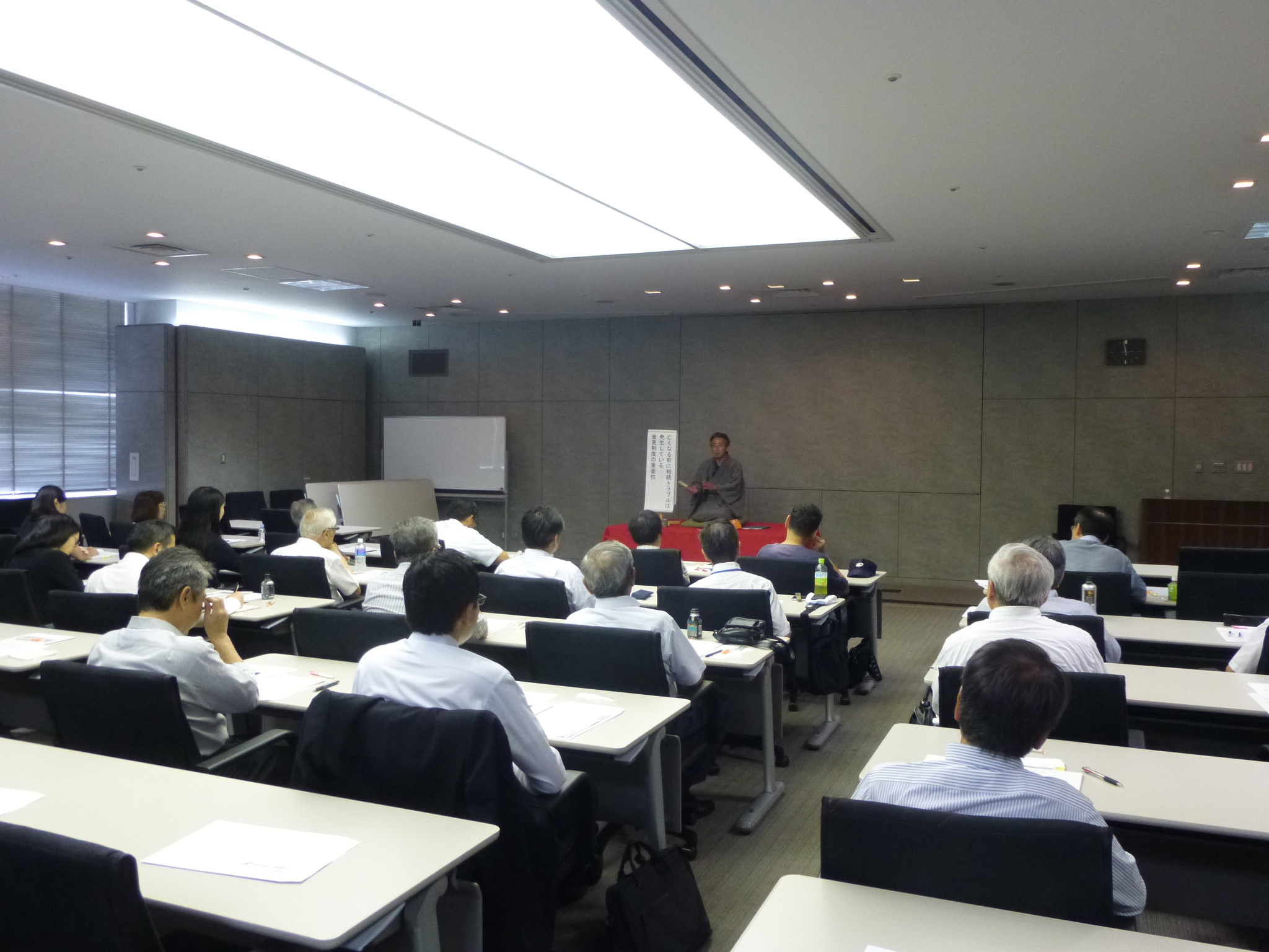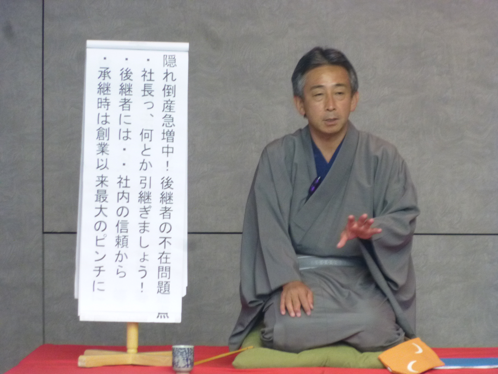 講演では、講師の行政書士・木﨑 海洋(こころ亭久茶)氏より、相続 ・ 事業承継問題を、実例を交えながら落語風に分かりやすく且つ楽しく解説いただきました。
