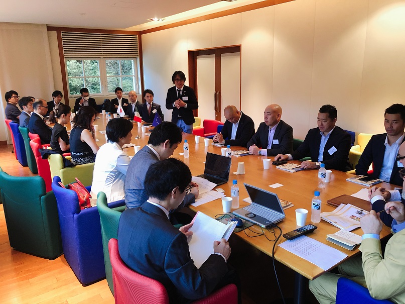 イタリア大使館内の庭園を見学後、同大使館の会議室にて日本とイタリアとの貿易促進のための意見交換を行いました。