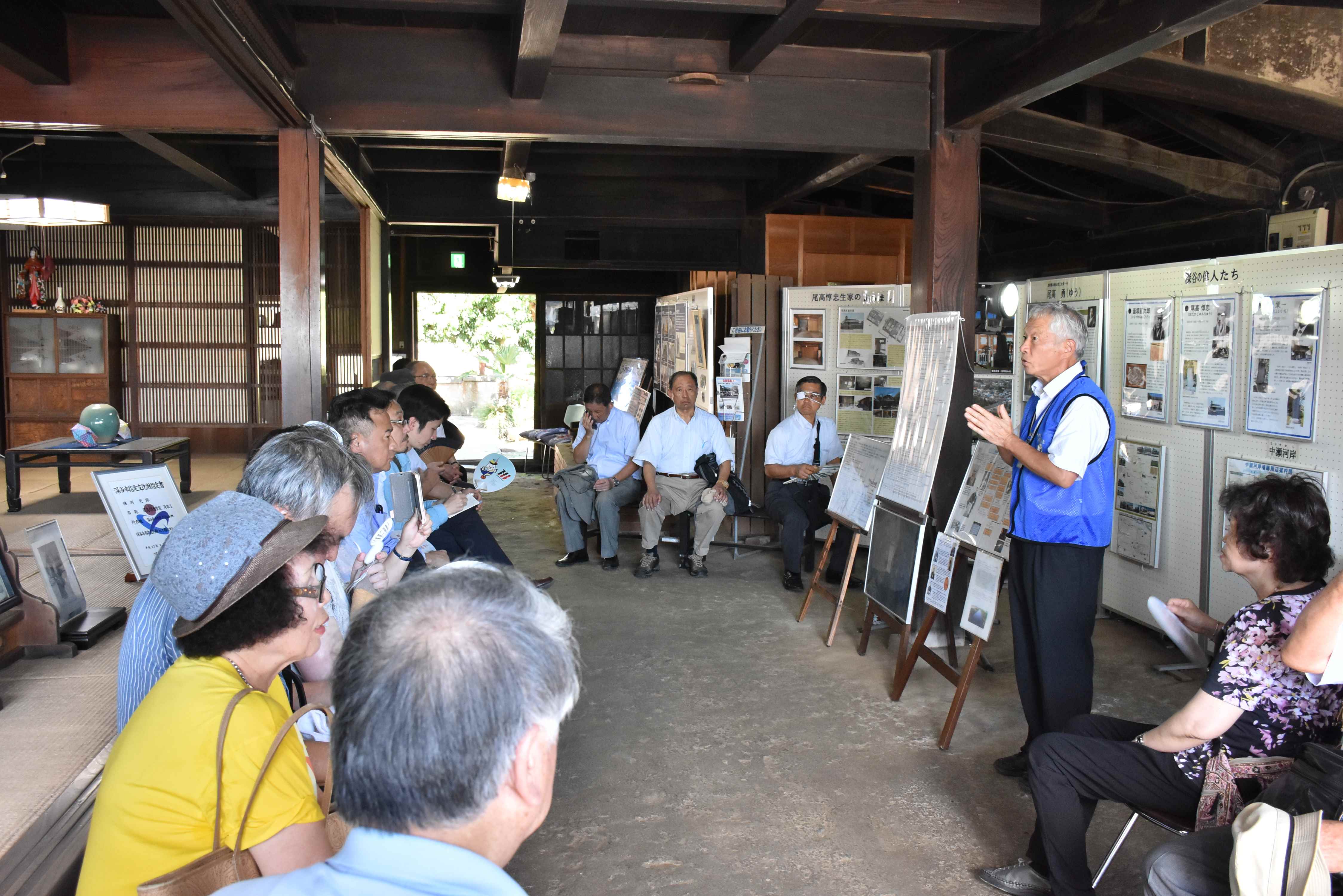 参加者は深谷市に到着後、栄一の妹夫婦によって明治28年に上棟(じょうとう)された建物「旧渋沢邸中ん家(なかんち)」をスタートとし、渋沢翁ゆかりの深谷のスポットを、徒歩とバスで巡りました。その後、昼食で深谷名物の「煮ぼうとう」を味わい、「渋沢栄一記念館」、「誠之堂・清風亭」、「深谷駅」を見学。視察中は、渋沢栄一記念館学芸員の馬場氏から渋沢翁の生涯について解説を頂き、その精神や偉業に触れました。