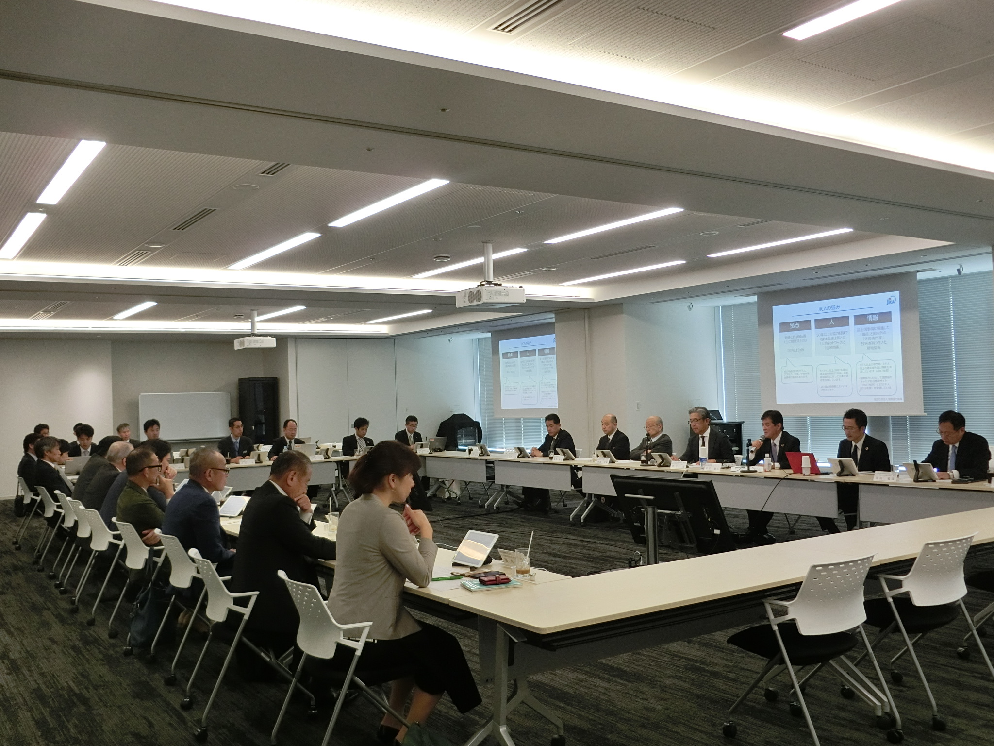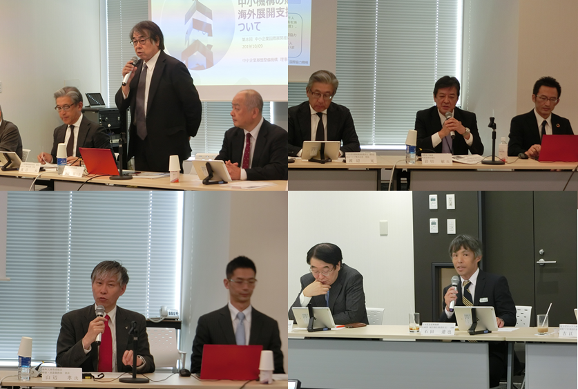 中小企業国際展開推進委員会(委員長=渡辺元・渡辺パイプ株式会社社長)は10月9日に第8回委員会を開催しました。中小企業基盤整備機構 理事 村井氏より「中小機構の販路開拓・海外展開支援事業」について、国際協力機構 理事長特別補佐 岩切氏より「JICAの中小企業海外展開支援事業」について、海外産業人材育成協会 研修・派遣業務部部長 山辺氏より「AOTSの支援サービス、支援事例」について、日本貿易振興機構 企画部主幹 石田氏より「ジェトロの支援サービス」についての講演がありました。各支援機関が有する支援サービスや他機関との違い、相談事例、等の説明がありました。その後、3年間の委員会活動に関する総括と意見交換を行いました。