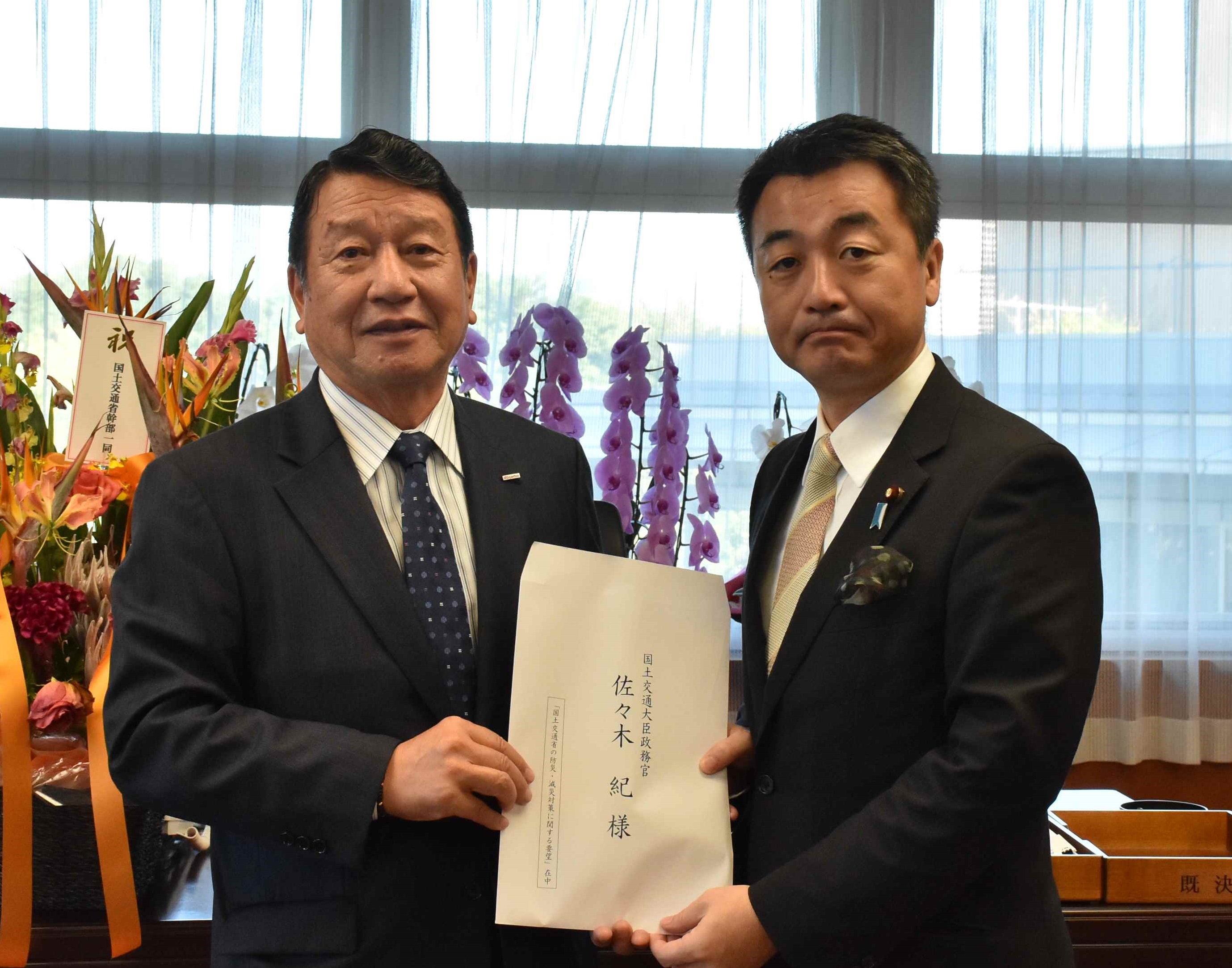 山田災害対策委員長(株式会社NTTドコモ シニアアドバイザー)は、10月23日に佐々木紀・国土交通大臣政務官を訪れ、標記要望書を提出しました。