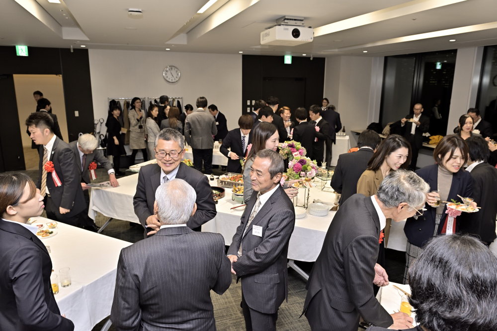 表彰式に続いて開催された交流懇親会では、受賞者同士、受賞者と一般のご参加者との活発な意見交換が行われていました。東京商工会議所検定センターでは、より多くの方々にeco検定で得た知識を生かして、所属されている企業やご家庭で具体的なアクションを実践していただけるよう、今後もエコピープル支援事業を展開していきます。