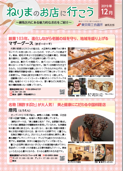 東京商工会議所練馬支部の新しい企画として、区内の会員企業の店舗を紹介する「ねりまのお店にいこう」を発行しました。区内会員企業の皆様には、東商新聞12月20日号に同封しております。是非一度ご覧ください。