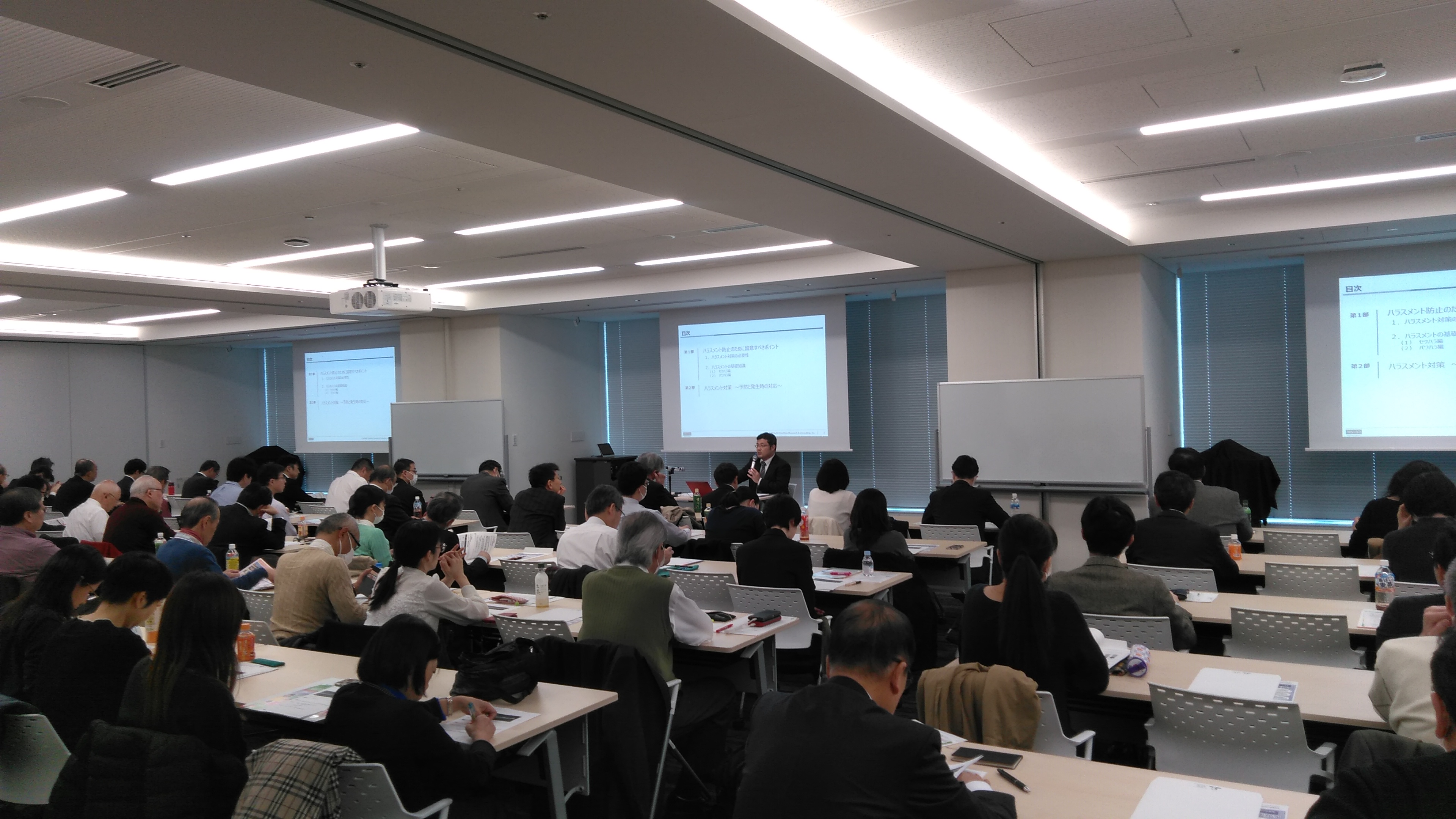 東京商工会議所共済センターは2月5日「法改正にみるハラスメントの動向と対策セミナー」を開催し、86人が参加しました。MS&ADインターリスク総研株式会社 リスクマネジメント第三部 危機管理・コンプラインスグループ 上席コンサルタントの人見 健太先生が、ハラスメントに関する法改正やその対策について最新の事例を挙げて解説しました。