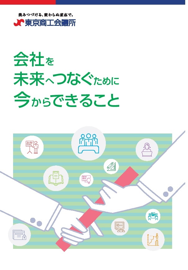 多くの中小企業が経営交代期を迎える「大事業承継時代」が到来し、事業承継が喫緊の課題となる中、国や東京都の支援施策もかつてないほど充実してきています。東京商工会議所においても、ビジネスサポートデスクの「社長60歳『企業健康診断』®」をはじめ、東京都事業引継ぎ支援センターにおける第三者承継(M&A)支援など、事業承継支援に重点的に取り組んでいます。経営者向けハンドブックでは、東商の支援メニューほか公的支援施策を有効に活用し、円滑な事業承継に向けた取り組みを促すため、施策の紹介や活用法のほか、切り取って使える「社長60歳『企業健康診断』®セルフチェックシート」や「事業承継税制適用に関するチェックリスト」を掲載しています。
