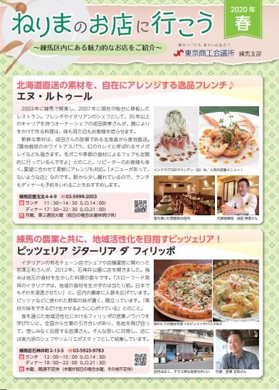 東京商工会議所練馬支部では、区内の会員企業の店舗を紹介する「ねりまのお店にいこう」の2020年春号を発行しました。是非お近くのお店に足を運んでみてください。区内会員企業の皆様には、東商新聞3月20日号に同封しております。
