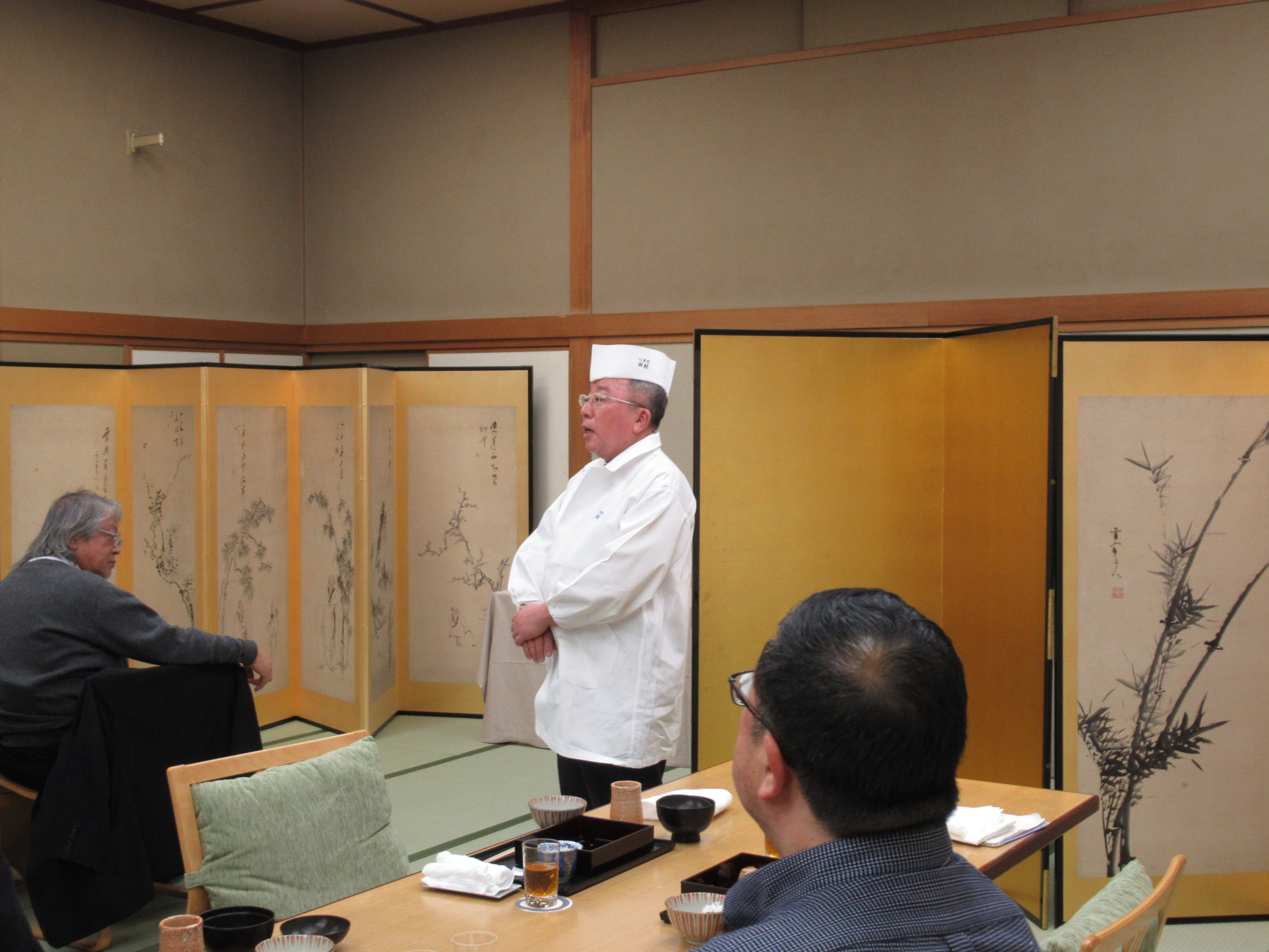 昼食では昭和23年開業の老舗懐石料理「つきじ田村」にて社長より、豊洲市場と築地市場について利用者目線での興味深い説明をいただきました。その後、築地市場の成り立ちや歴史、2018年10月に新たに開場した豊洲市場の見どころについて講話を聞いた後に、豊洲市場を歩いて見学しました。