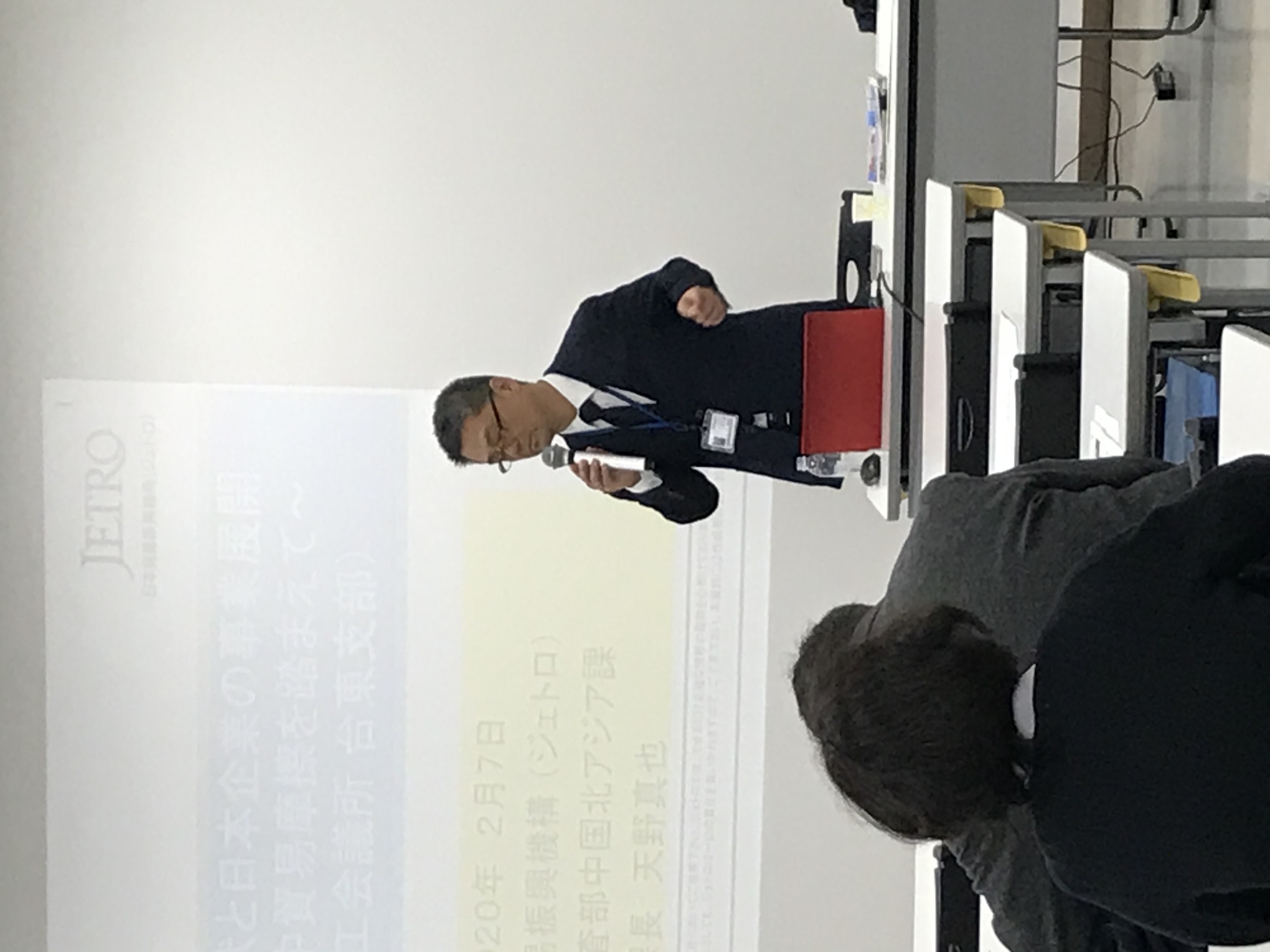 セミナーでは、講師の天野真也氏(独立行政法人日本貿易振興機構 海外調査部中国北アジア課長)が中国経済を見る視点として米中経済摩擦や新型コロナウィルスの影響、深圳の競争力やイノベーションのについて詳しく説明しました。