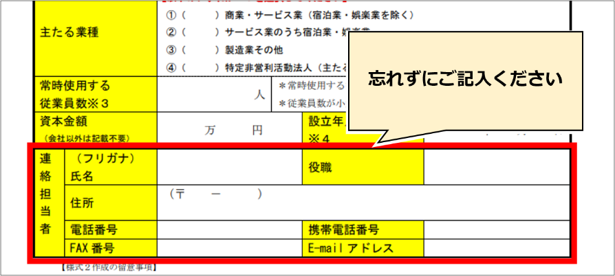 なお、連絡は様式2に記載する連絡担当者にご連絡させていただきます。