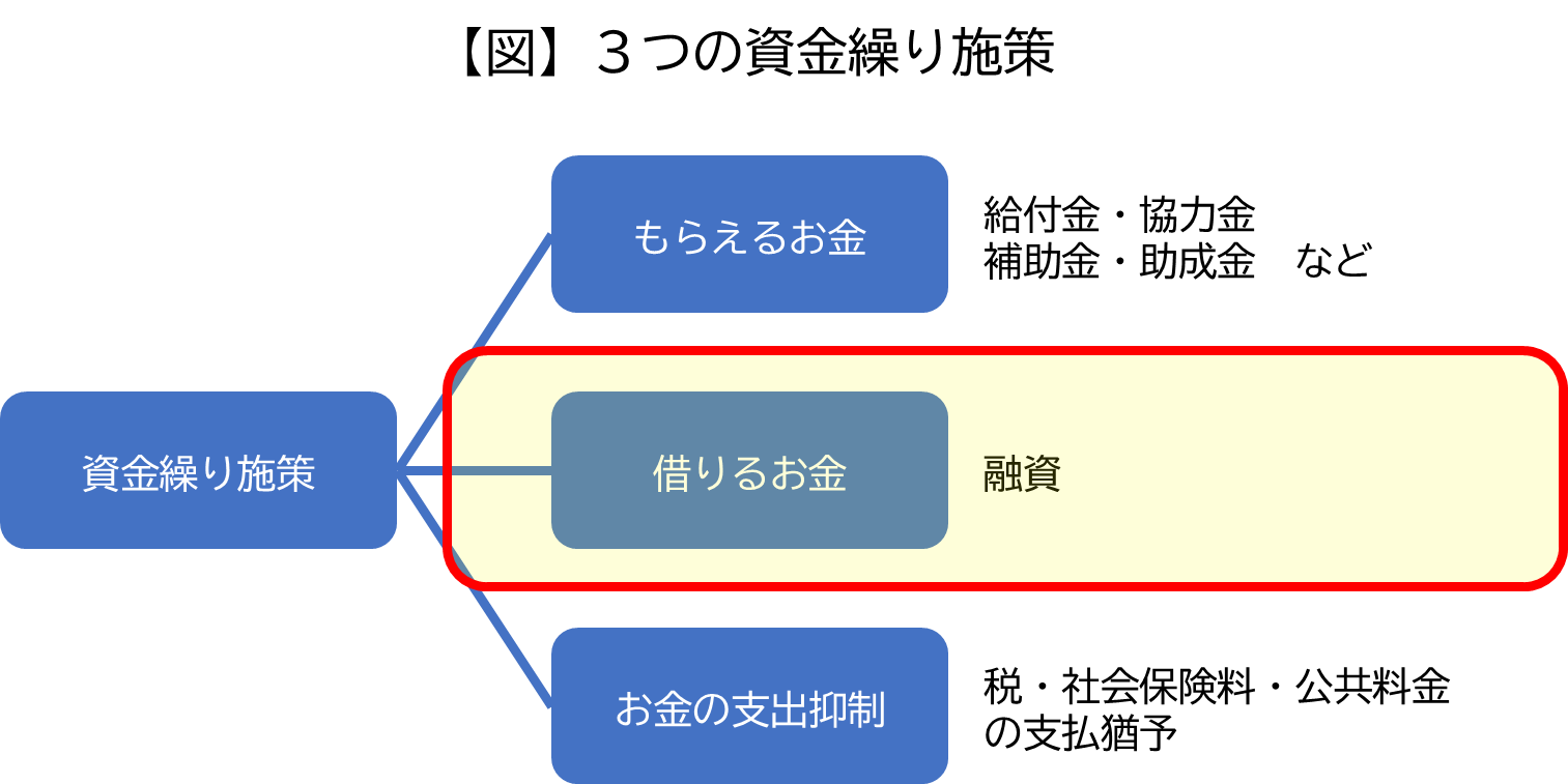 一言で言えば「借りるお金」です。前回、ご紹介した3つの資金繰り施策の2つ目に該当します。